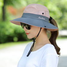 户外遮阳帽子女夏太阳帽折叠渔夫帽大沿防晒沙滩帽出游骑车登山帽