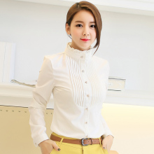 2017春季韩版上衣立领白衬衫长袖雪纺衫职业装衬衣修身打底衫女