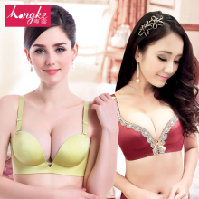 亨客加厚小胸女士无痕无钢圈内衣拉丝舒适调整型性感深VB聚拢文胸