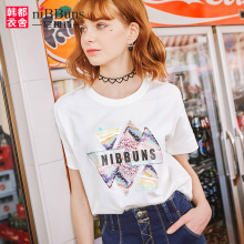 尼班诗欧美2017夏装新女装圆领宽松上衣纯棉t恤女短袖学生WBZ5052