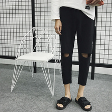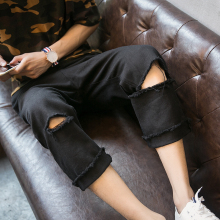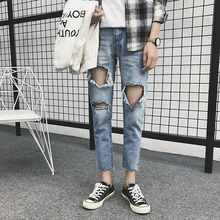 2017夏季新款青少年港风修身小脚破洞百搭学生林弯弯九分裤男潮流