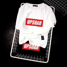 大灰狼 夏季港风男简单情侣装帅气潮流宽松字母刺绣学生短袖t恤