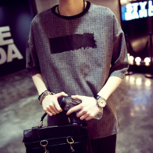 大灰狼17夏季韩国宽松男七分袖情侣学生下摆开叉短袖T恤休闲体恤