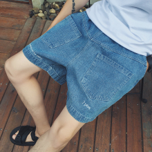 大灰狼夏季韩版男生水洗宽松大口袋松紧腰青少年学生牛仔短裤三分