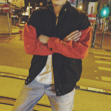 大灰狼2017春季韩版字母绣花撞色男士宽松阔形学生夹克衫翻领外套