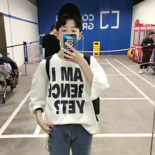 潮卖铺 夏季韩版个性假两件中袖T恤男士宽松七分短袖潮流学生上衣