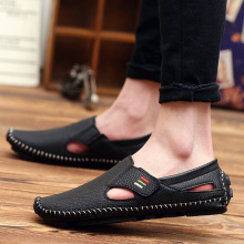男士休闲鞋透气豆豆鞋男鞋子套脚懒人鞋洞洞凉鞋春夏季镂空男皮鞋