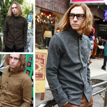 春装 JURY BLACK 日系复古 粗花呢加厚原宿潮男秋冬长袖休闲衬衫