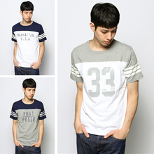 夏季 日系街头原宿风 印花修身棒球衫复古拼接潮流男士短袖T恤衫