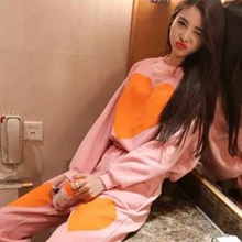 睡衣女秋纯棉长袖圆领套头韩版可爱心形宽松家居服套装可外穿大码