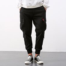 潮牌原创松紧腰多口袋工装裤男束腿裤休闲裤子冬天收腿裤男束脚裤
