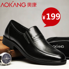 奥康男鞋 夏季商务牛皮套脚中年爸爸鞋子男士正装皮鞋男真皮透气