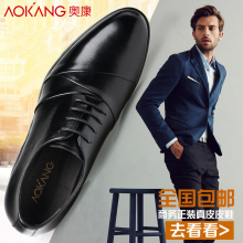 奥康男鞋秋季商务正装皮鞋 男士皮鞋英伦尖头系带婚鞋真皮正品潮