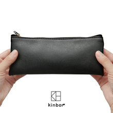 kinbor 简约风炫酷黑色PU笔袋 简约创意拉链铅笔袋 软皮面文具袋