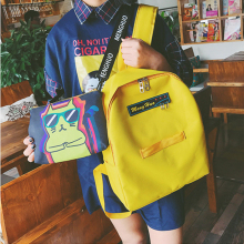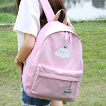 韩国定制纯色帆布双肩包女初高中学生书包校园大容量旅行电脑背包