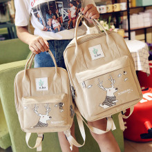韩版简约刺绣时尚潮双肩包女帆布中学生书包原宿风休闲背包旅行包