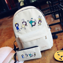 帆布印花双肩包女日韩版潮学院高中生旅行背包小清新风中学生书包