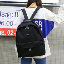 日韩版双肩包女简约休闲中学生书包字母帆布潮学院风旅行电脑背包