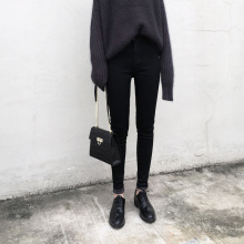 秋冬万年小黑裤加绒加厚复古AA风高腰小脚牛仔裤修身显瘦铅笔裤女