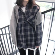 2016秋冬新款 文艺复古格纹西装呢子夹棉外套女 vintage显气质