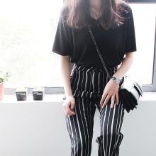 2017春夏新款简约纯色V领竖条纹肌理短袖T恤宽松显瘦上衣打底衫女