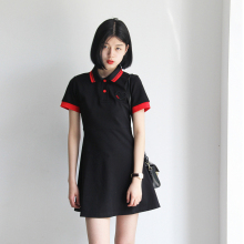 CHICVEN自制 复古学院风撞色螺纹拼接polo衫短袖连衣裙中长款女夏