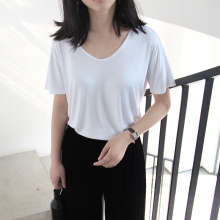 CHICVEN自制2017春夏新款 宽松百搭纯色V领莫代尔短袖T恤打底衫女