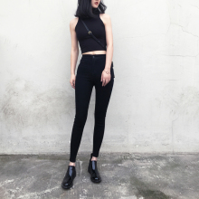CHICVEN自制万年小黑裤 显瘦百搭高腰小脚牛仔裤铅笔裤九分裤子女