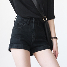 CHICVEN自制夏季新款 复古高腰显瘦阔腿翻边卷边牛仔短裤热裤 女