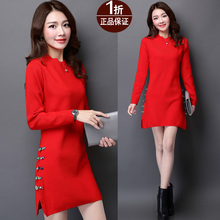 2016秋冬新款韩版修身大码中长款毛衣女套头加厚针织打底衫毛衣裙