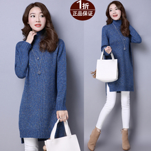 秋冬季新款大码针织羊绒衫中长款高领毛衣女套头加厚打底羊毛衫裙