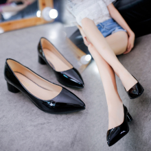 2016秋季3cm小皮鞋低跟粗跟女鞋单鞋韩版浅口尖头黑色漆皮工作鞋