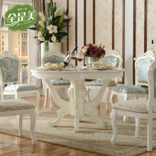 全是美 欧式餐桌 大理石圆餐桌椅组合饭桌法式实木餐桌餐台带转盘