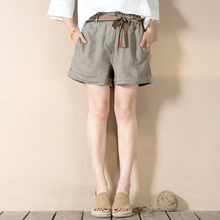 【偶遇陆家】气质款亚麻松紧腰休闲短裤附腰带 自留 2016夏女装