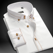 夏季男士纯白色长袖衬衫男韩版修身免烫寸衫商务正装职业工装衬衣