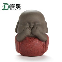 得窑彩砂茶宠三不小和尚摆件精品紫砂沙弥可爱佛不说不听不看茶玩