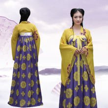 优格美武媚娘传奇同款古代服装 唐朝黄色原版印花襦裙古装女汉服