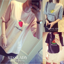 2016夏季新款韩版半袖t恤百搭大码卡通印花圆领宽松t恤女上衣衫潮