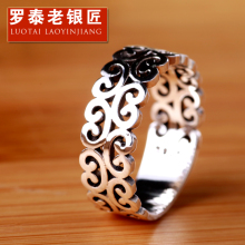 罗泰老银匠925银饰吉祥纹个性时尚情侣银戒指女宽指环食指戒礼物