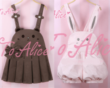 软妹软萌可爱日系童趣动物咖啡小熊背带裙粉红兔子背带南瓜裤