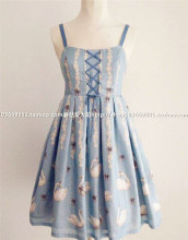 软妹少女lolita日系吊带交叉绑带系带天鹅湖水色连衣裙2色入