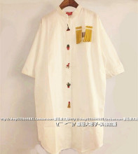 现货 软妹童趣家具home系列白色门襟刺绣窗帘设计小立领长款衬衫