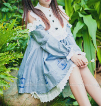 可爱日系软妹lolita日常改良华丽荷叶边鸟笼少女-初秋印花连衣裙