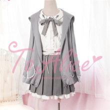 可爱软妹灰色尾巴秋季可爱小浣熊外套+荷叶边衬衫+印花半裙套装