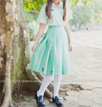 有长袖~软妹日系jk制服学院水绿叶子薄荷叶绿叶领衬衫百褶裙套装