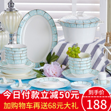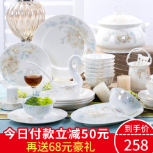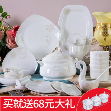 餐具套装 景德镇陶瓷器56头骨瓷餐具碗盘碗碟套装 家用结婚送礼