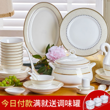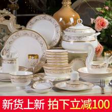碗碟套装56/28头景德镇骨瓷餐具陶瓷器金边碗盘欧式碗筷套装送礼