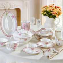 碗碟套装 景德镇陶瓷器56头骨瓷餐具碗盘 家用欧式碗筷结婚送礼