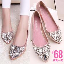 2017新款韩版女鞋单鞋女平底鞋平跟休闲鞋潮水钻单鞋浅口尖头女鞋