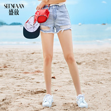 【唐艺昕同款】盛放2017夏装新款直筒破洞牛仔裤女短裤棉质牛仔裤
